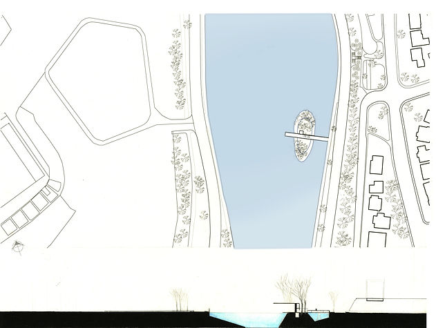 The Promenade is a small-scale pavilion located on a natural island, filled with trees, in the Rideau Canal on Colonel By Drive near Landsdown Park in Ottawa. After analyzing the site, I came to the conclusion that the pavilion should be simple yet be a part of the island's experience. The entrance is a bridge that leads to a courtyard that has trees as part of the path. The courtyard is open so that it allows the freedom to walk around the island. Then the path continues to inside of the pavilion where there would be services such as: Kayak Rentals that opperates in the summer, a Cafe, accessible washroom, storage spaces on the balcony on the waterfront. The cafe is glazed so that it allows for great views. Then the path passes the edge of the island to serve as a balcony/dock. During the winter, people skating will access the island and the pavilion from a ramp that will be in place that season.